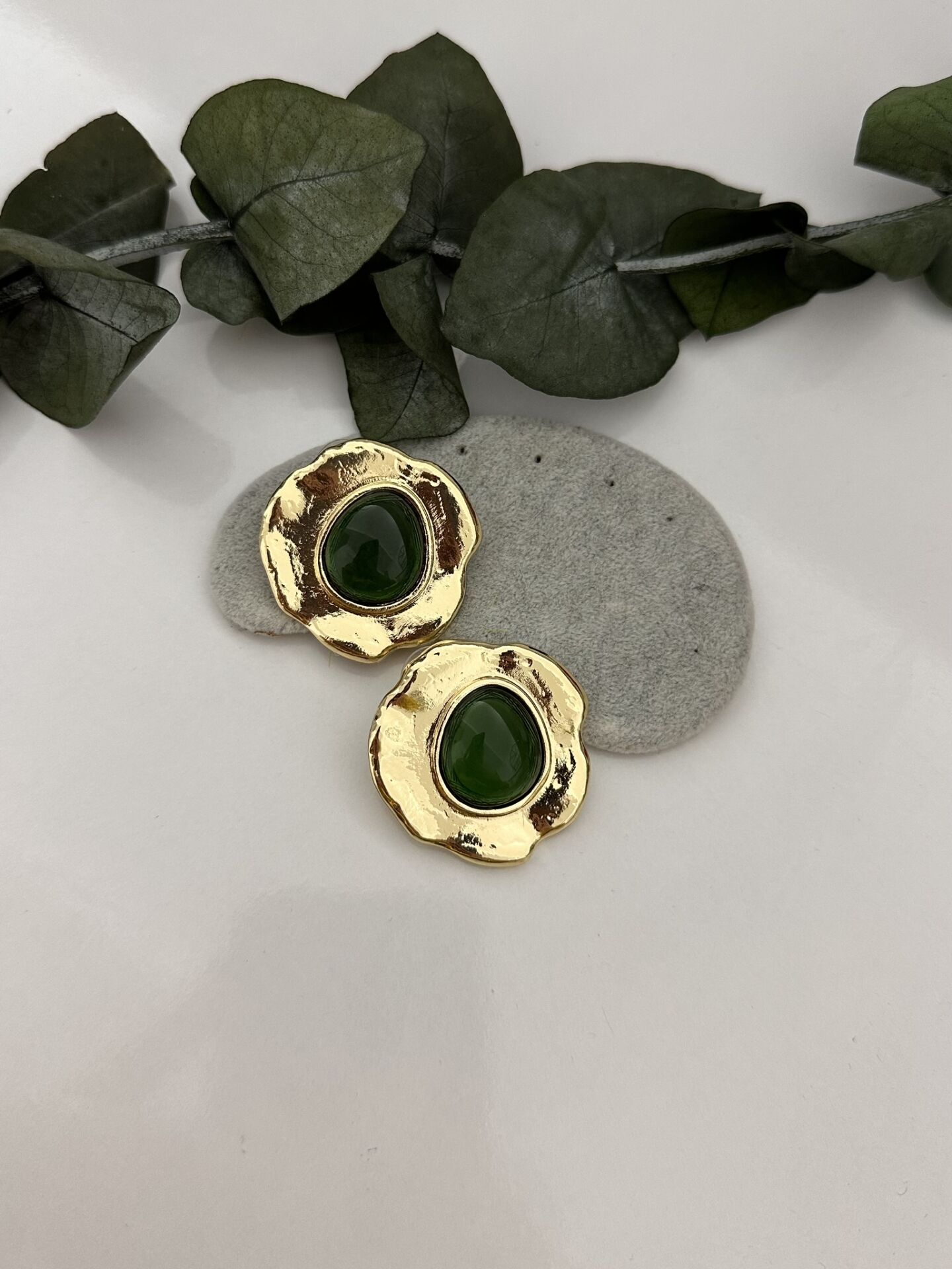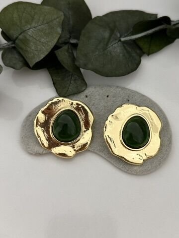 Doğal Taşlı Yeşil Küpe
