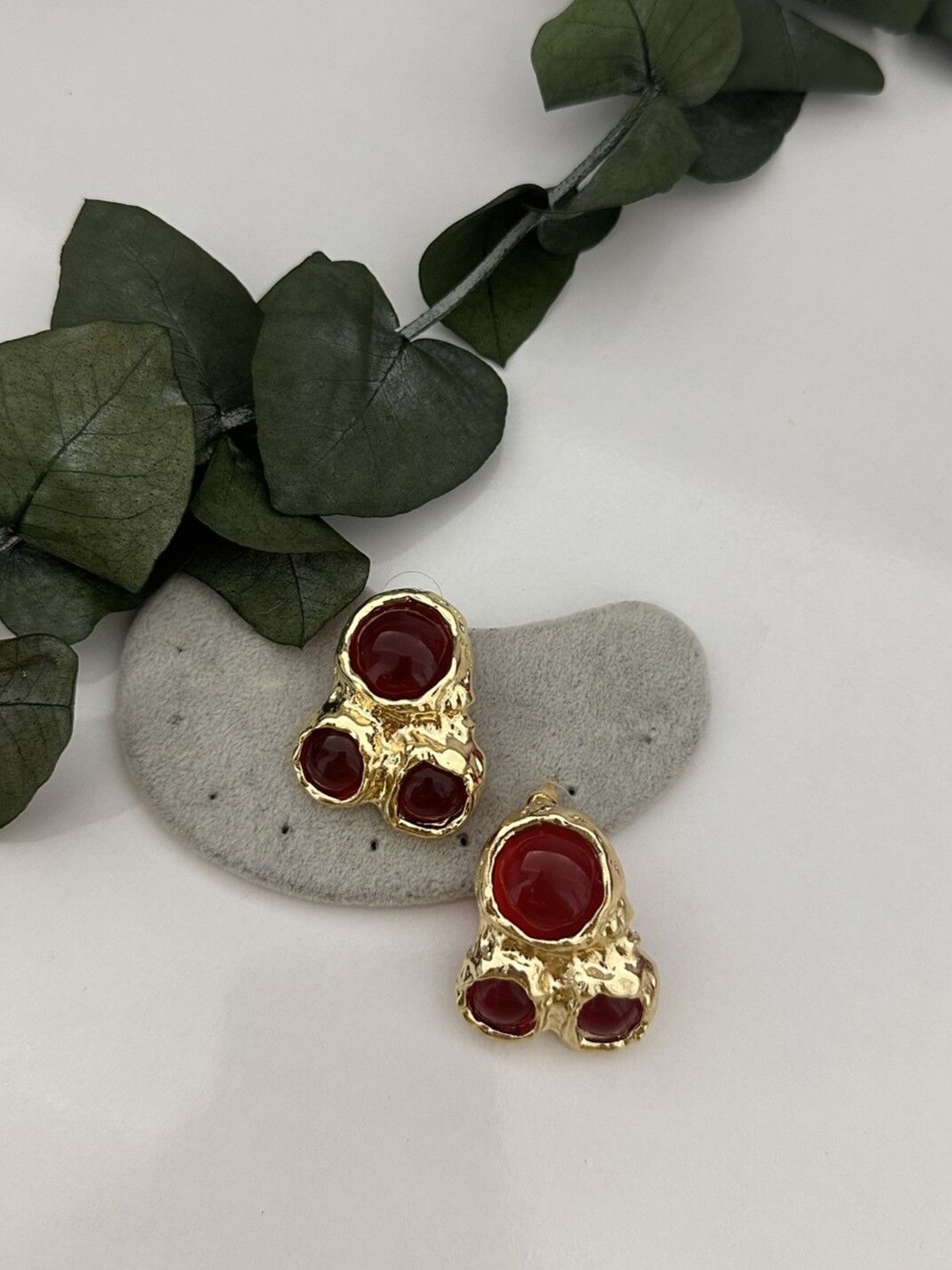 Kırmızı Taşlı Gold Detay Küpe