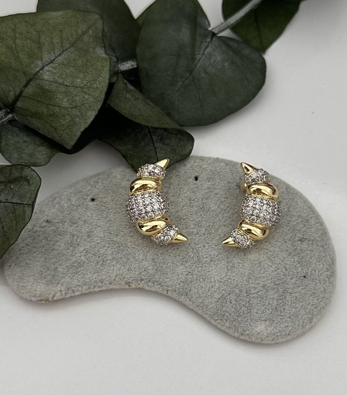 Kruvasan Küpe Zirkon Taşlı