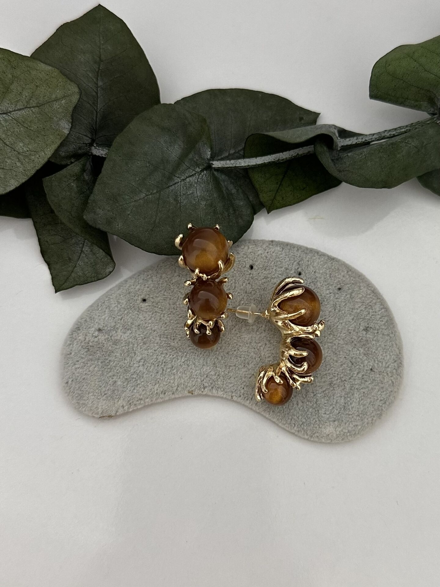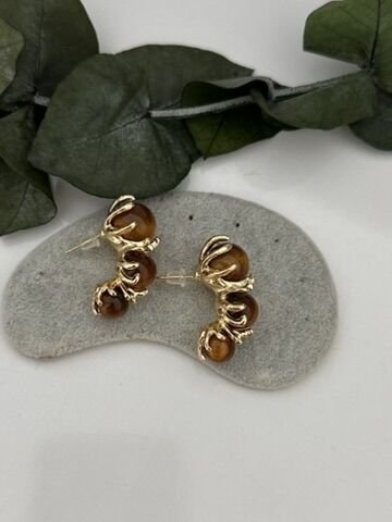Üçlü top model kahverengi küpe